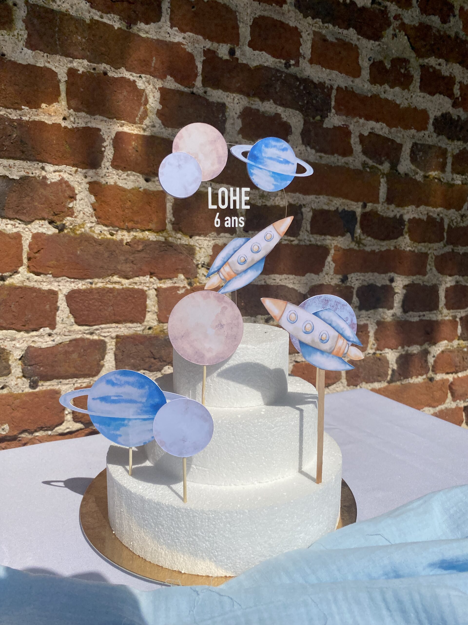 Ajoutez une touche d’originalité à votre gâteau d’anniversaire avec le topper cake Espace unique et personnalisable.